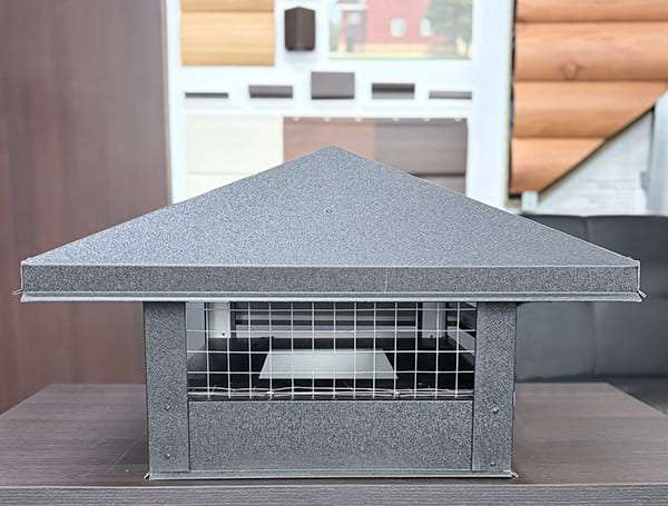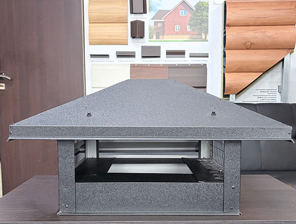 Стабильный воздухообмен — правильно спроектированная форма колпака не препятствует выходу воздуха и помогает вентиляции работать эффективно при любых погодных условиях.