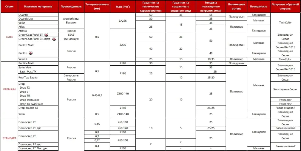 Drap 0.5 – матовое покрытие. Толщина стали 0.5 мм. Отличное соотношение цена/качество.