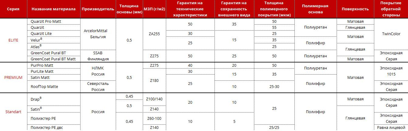 Drap 0.5 – матовое покрытие. Толщина стали 0.5 мм. Отличное соотношение цена/качество.