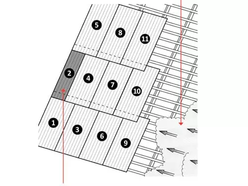 · 5-10° - поперечно нахлест – 2 волны, в длину – не превышая 30 см.
