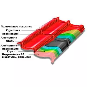 | слой цинка наносится на лист с двух сторон, чем толще антикоррозийный слой, тем выше защита от влаги, ржавчины. Существуют три класса цинкования: повышенный (570-585 г/м2), 1 класс (258-570 г/м2), 2 класс (142,5-258 г/м2) | сплав увеличивает коррозийную стойкость кровельного материала, самовосстановление антикоррозийного слоя вследствие естественных процессов окисления. Кромки листов такой металлочерепицы надежно защищены от ржавчины, что важно для регионов с частыми осадками, туманами, обильными снегопадами | сплав цинка, алюминия и кремния, добавление алюминия обеспечивает создание прочной пленки, препятствующей окислению стали, повышает адгезию частиц покрытие глубоко в тело стали. Получается идеально гладкое, без шероховатостей и зернистости покрытие, на которое легко наносить красящий состав и грунтовку. Увеличивается стойкость и долговечность металлочерепицы |