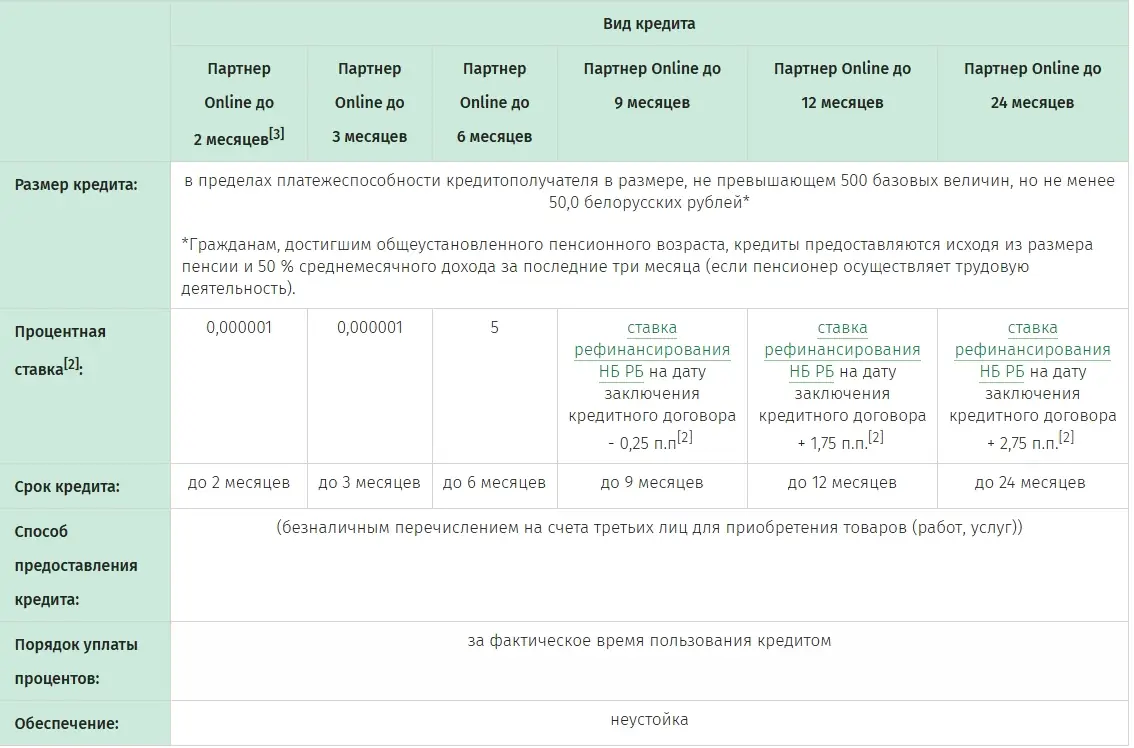 Кредит от Беларусбанка "Партнер Online"